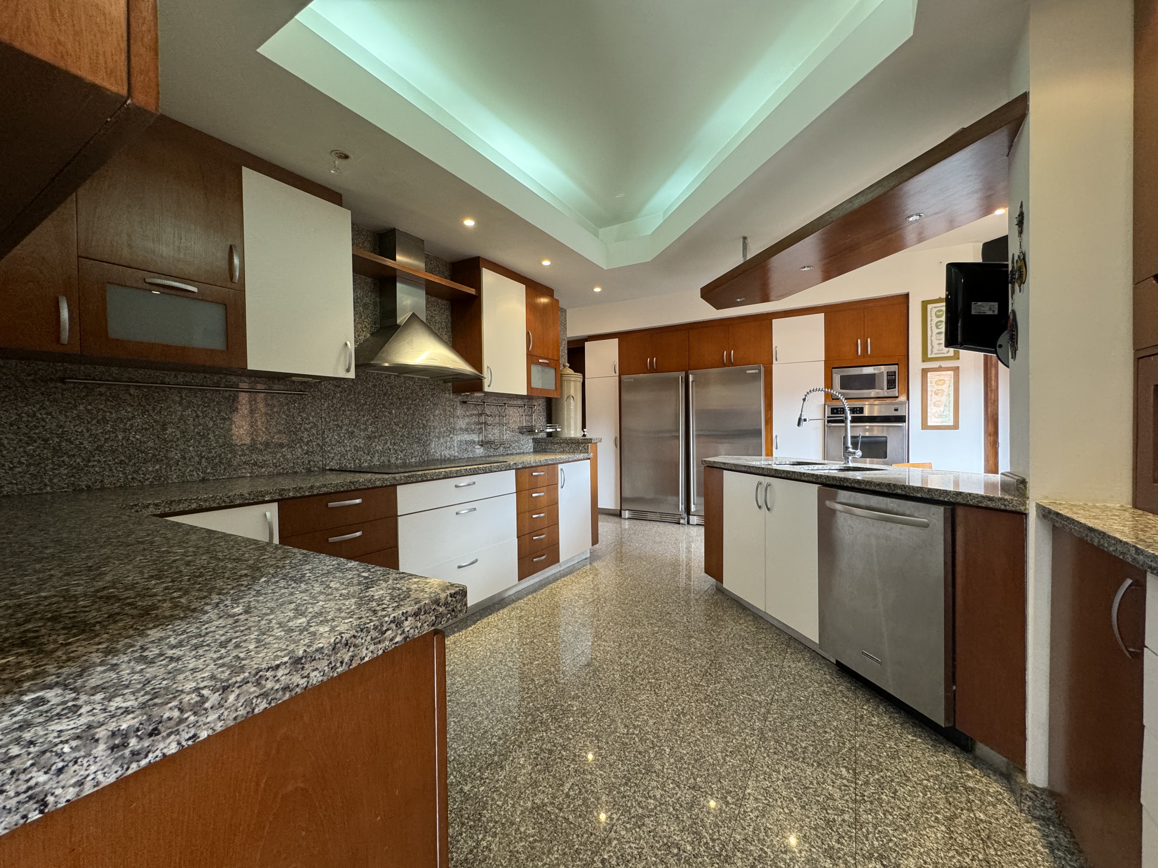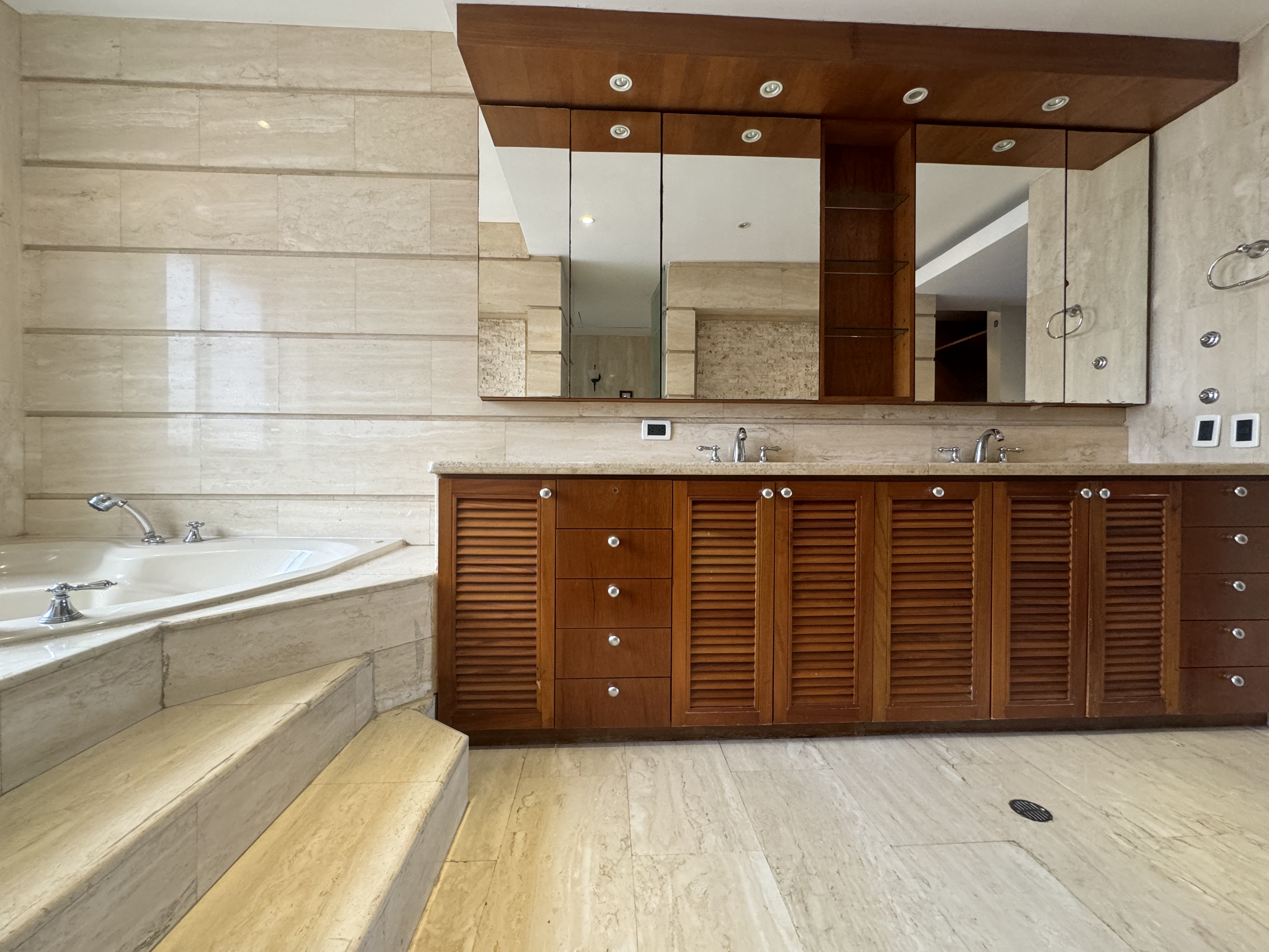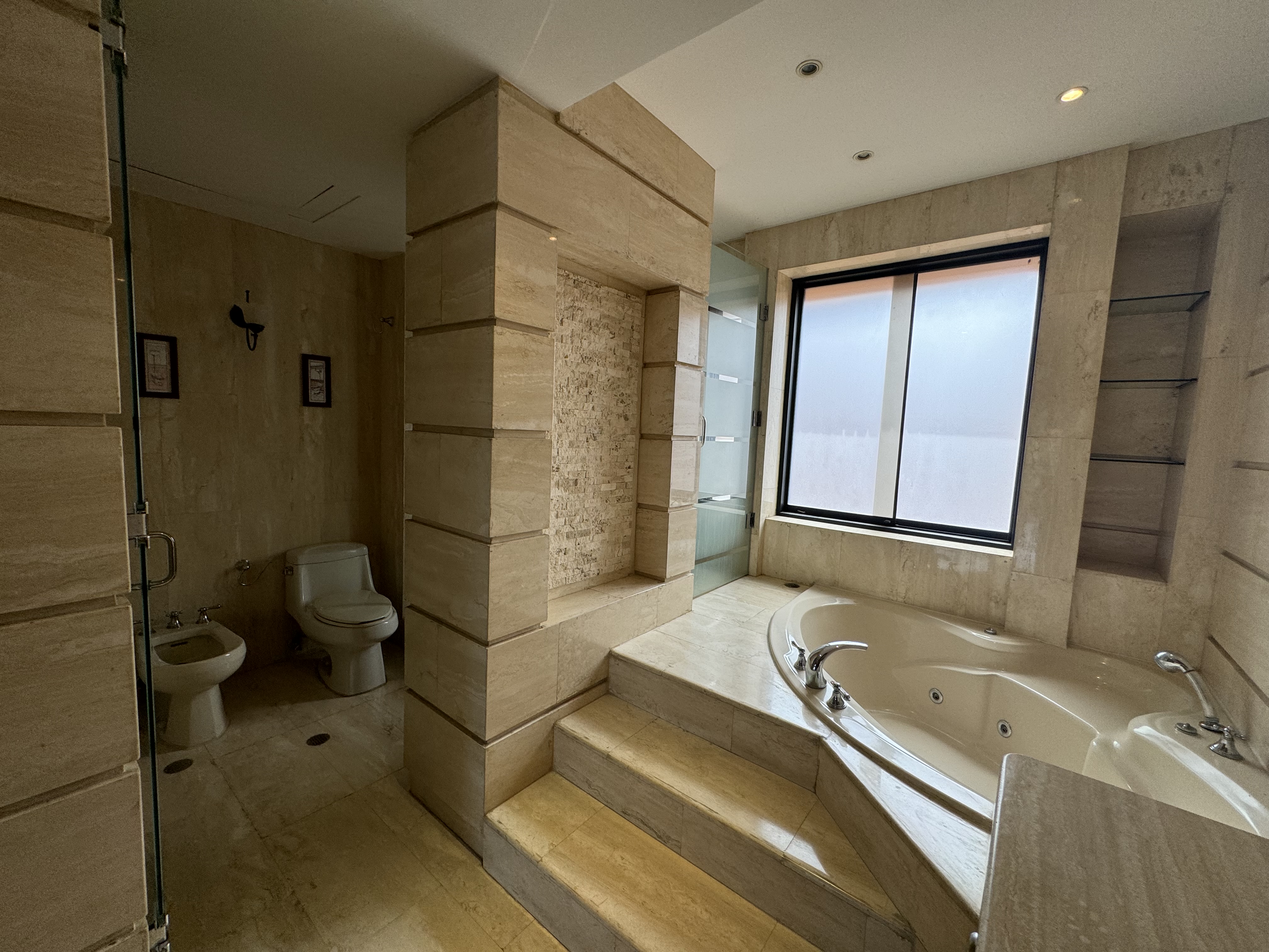 Nivel principal amplia e iluminada sala con doble altura y pisos de mármol, estudio con medio baño, cocina independiente con excelentes acabados y totalmente equipada, salón comedor y escaleras que conducen al nivel inferior donde se encuentra agradable family, habitación principal con amplio vestier y baño con jacuzzi. acabados completamente en mármol, 2 habitaciones cada una con baño y amplios closets.