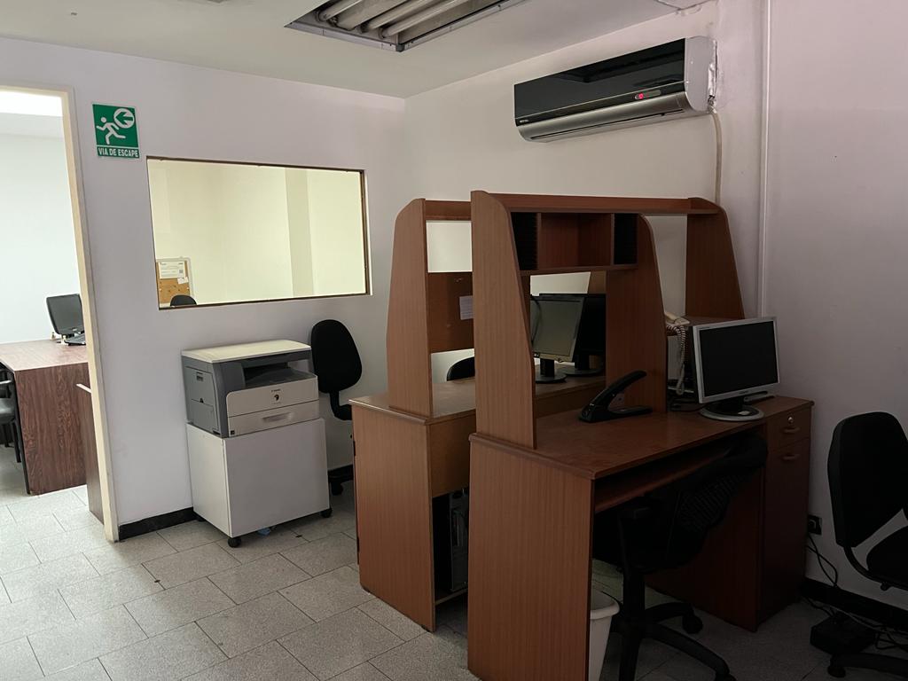 SE ALQUILA AMPLIA OFICINA. Cuenta con 1 oficina principal, 2 oficinas secundarias, 1 Cubiculo, 1 Sala de reuniones, 1 sala múltiple con 3 puestos de trabajo, deposito más área de kitchenette. Ademas cuenta con su área de recepción, 2 lineas telefónicas. Se deja amoblada con escritorios y equipos de computación.