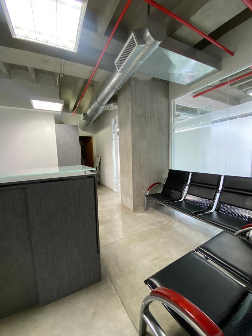 Esta oficina se alquila amoblada, posee área de recepción, 2 oficinas con privadas, sala de reunión, 1 baño, kitchenette, servidores, 1 puesto de estacionamiento, aire acondicionado central y sistema de seguridad.