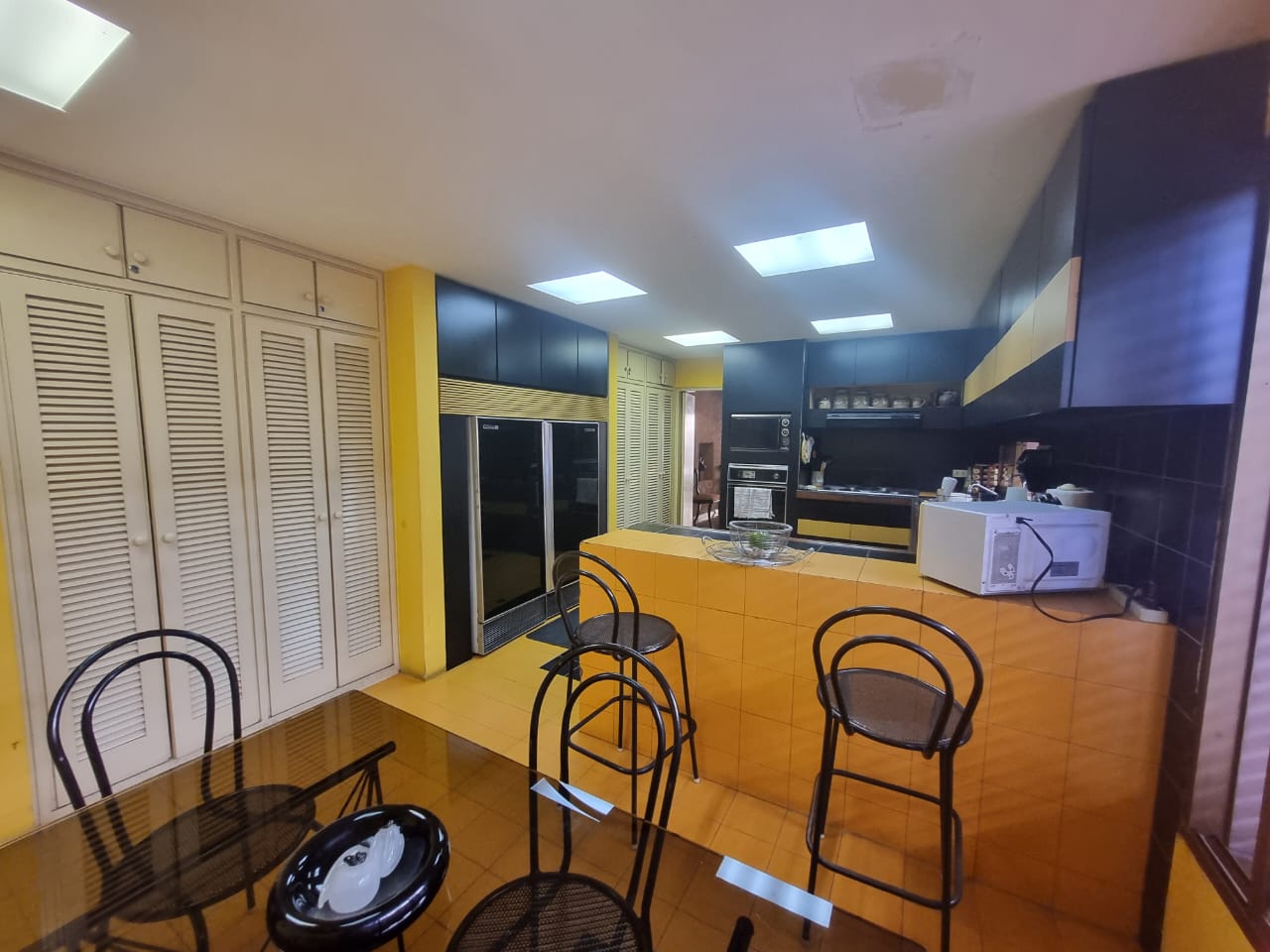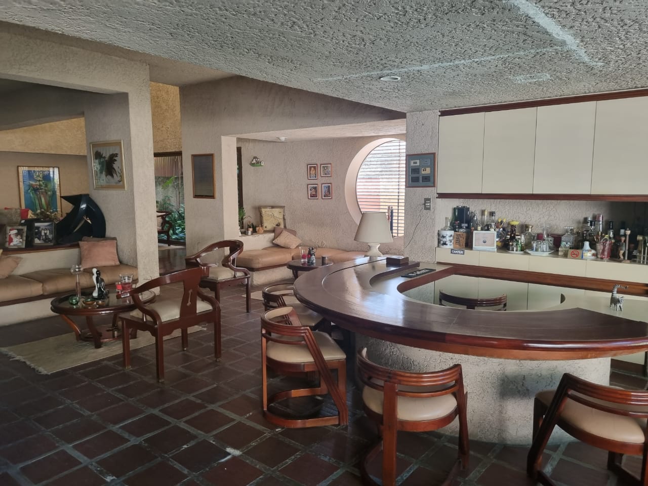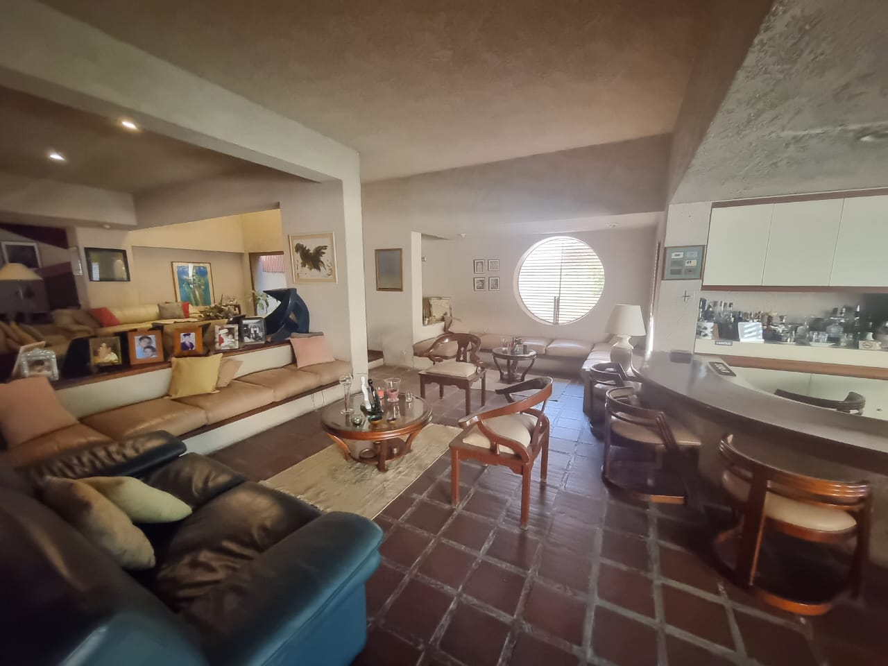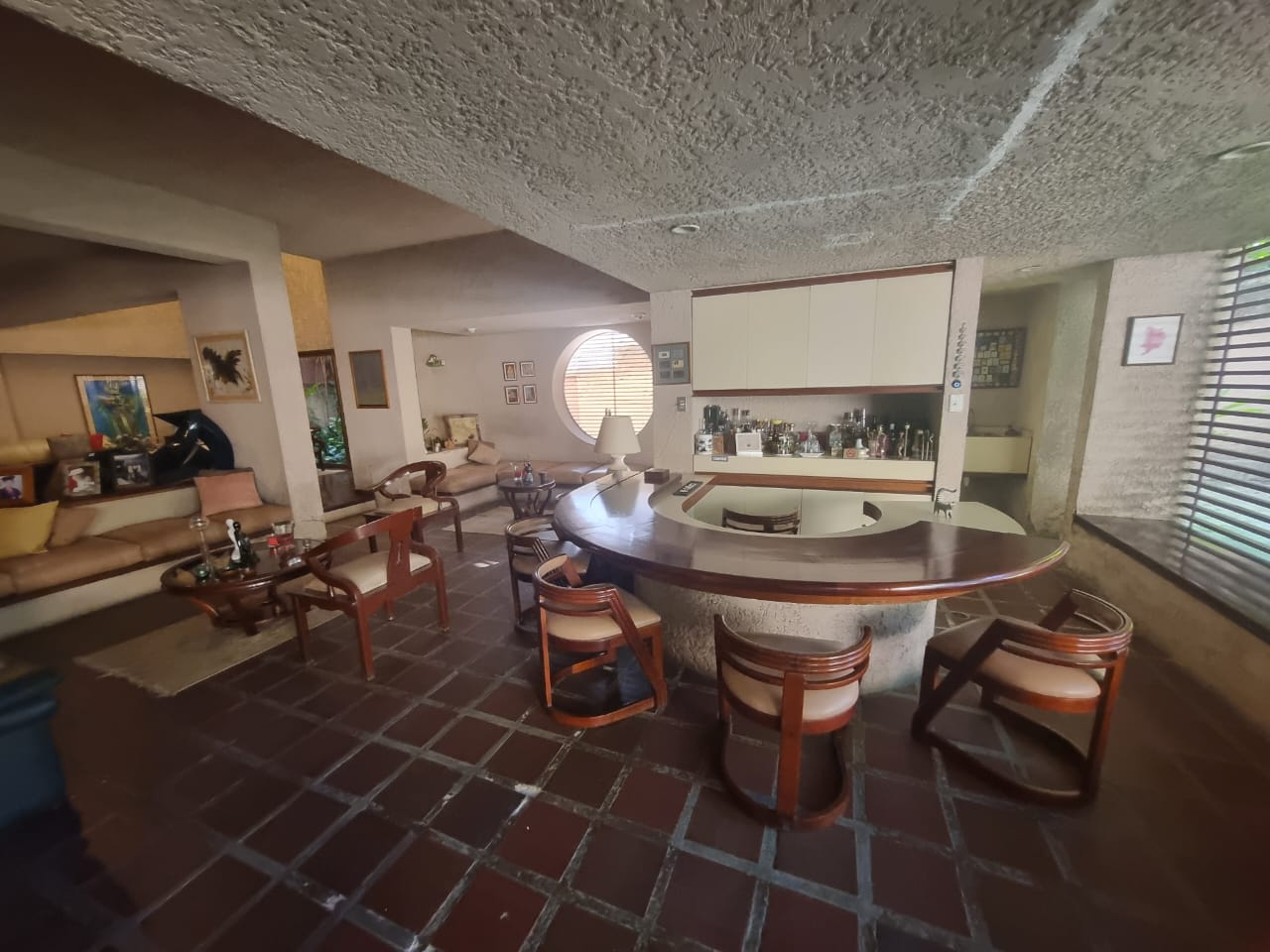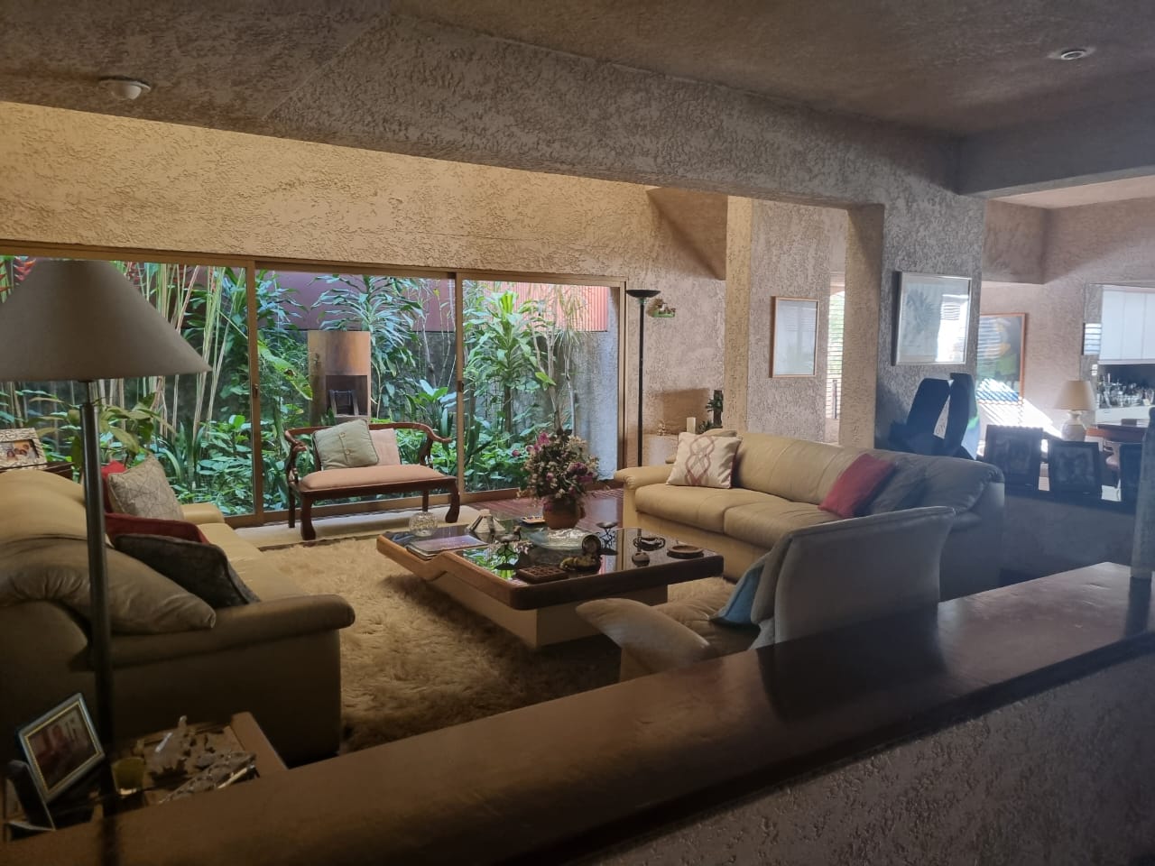 En el primer nivel se encuentra un amplio jardín, un salón principal con pérgola, salón adicional, bar de diseño, comedor, estudio, cocina, pantry, area de lavadero, dos (2) habitaciones de servicio con baño, dos (2) baños de visita, jardín en la parte posterior con área de parrillera, garaje para tres (3) vehículos.