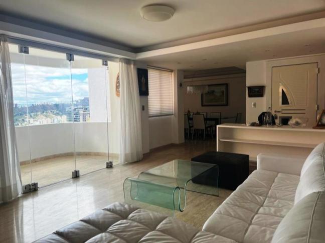En Valle Arriba, a menos de 100 metros del Mirador de Valle Arriba y a 800 metros. de la Embajada de Los Estados Unidos, está en venta un hermoso apartamento de 214 mts2., distribuidos de la siguiente manera: cuatro (4) habitaciones equipadas con baño privado y aire acondicionado, la habitación principal es amplia, con una área de closets muy cómoda, baño con cabina ducha y jacuzzi, un (1) baño para visitas, también cuenta con dos (2) maleteros, uno ( 1) pequeño en el apartamento y uno (1) más amplio ubicado en el sótano, 3 puestos de estacionamiento techado y puestos para visitantes dentro de la residencia. Espectacular vista y una armónica comunidad de doce (12) propietarios, ascensor directo al apartamento, más entrada independiente de servicio por la cocina, con ascensor independiente, puertas de seguridad Multi-Look, en el acceso principal y área de seguridad a las tres (3) habitaciones del área privada y principal. Servicios de Cantv, ABA, Internet. Hay que afiliar el servicio de TV por cable. Tanque de 200 litros, ubicado en una de las habitaciones. El edificio tiene tanque de agua y planta eléctrica. El inmueble se vende totalmente equipado. Excelente Inversión.