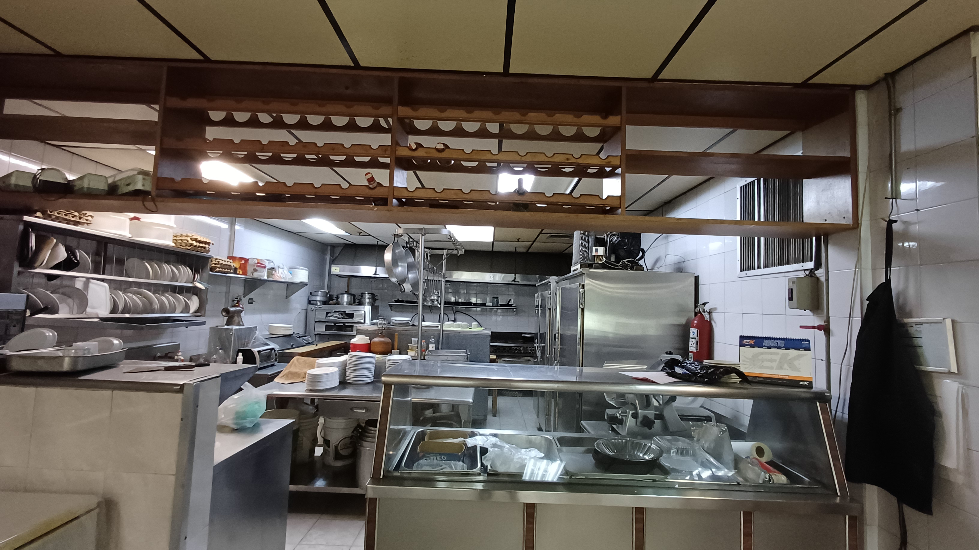 Cuenta con gas directo, electricidad industrial, ductos de extracción hasta el techo del edificio, sistema contra incendio y lámparas de emergencia.